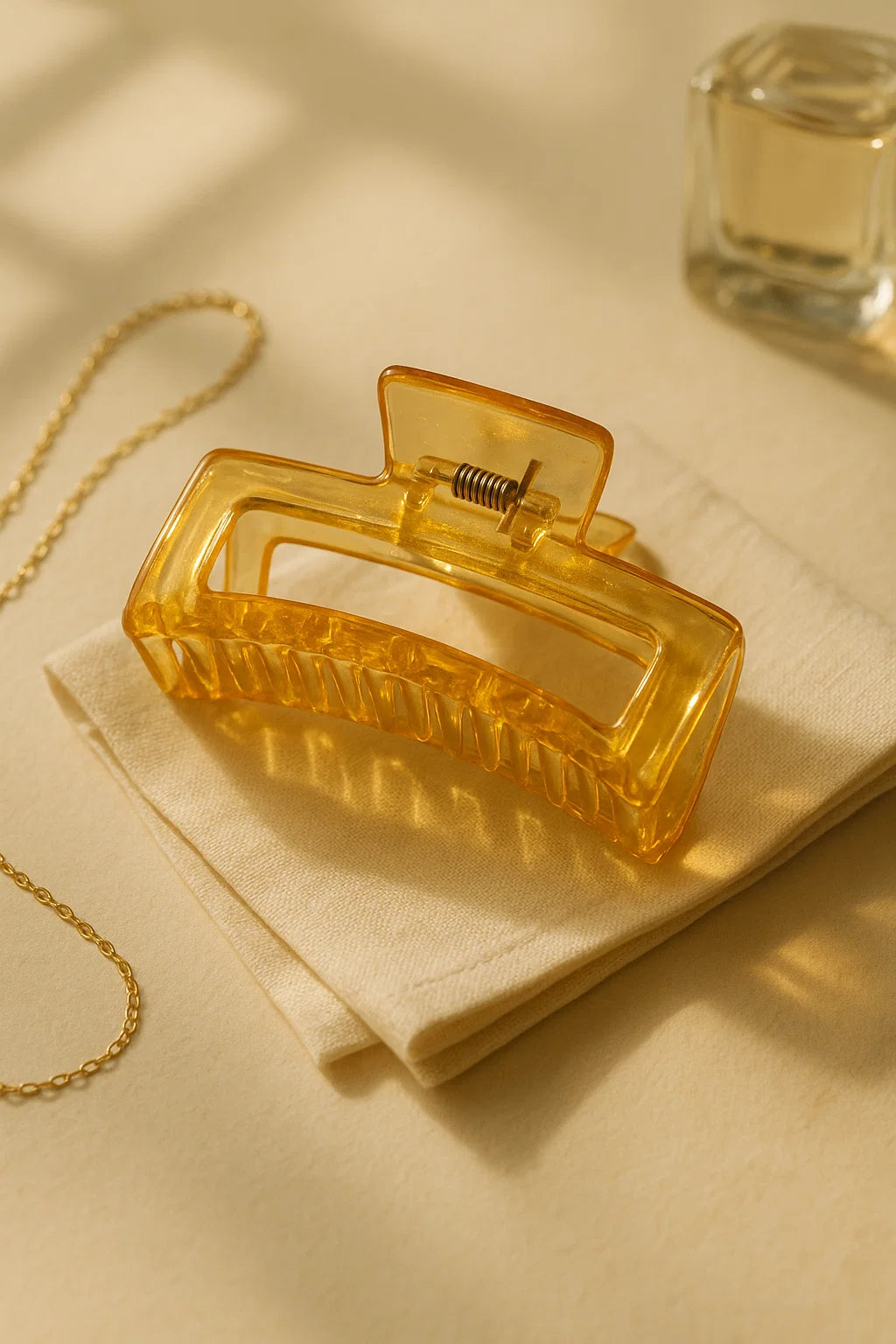 Amber Aura Gloss Acrylic Claw Clip that adds a warm glow to everyday hair.