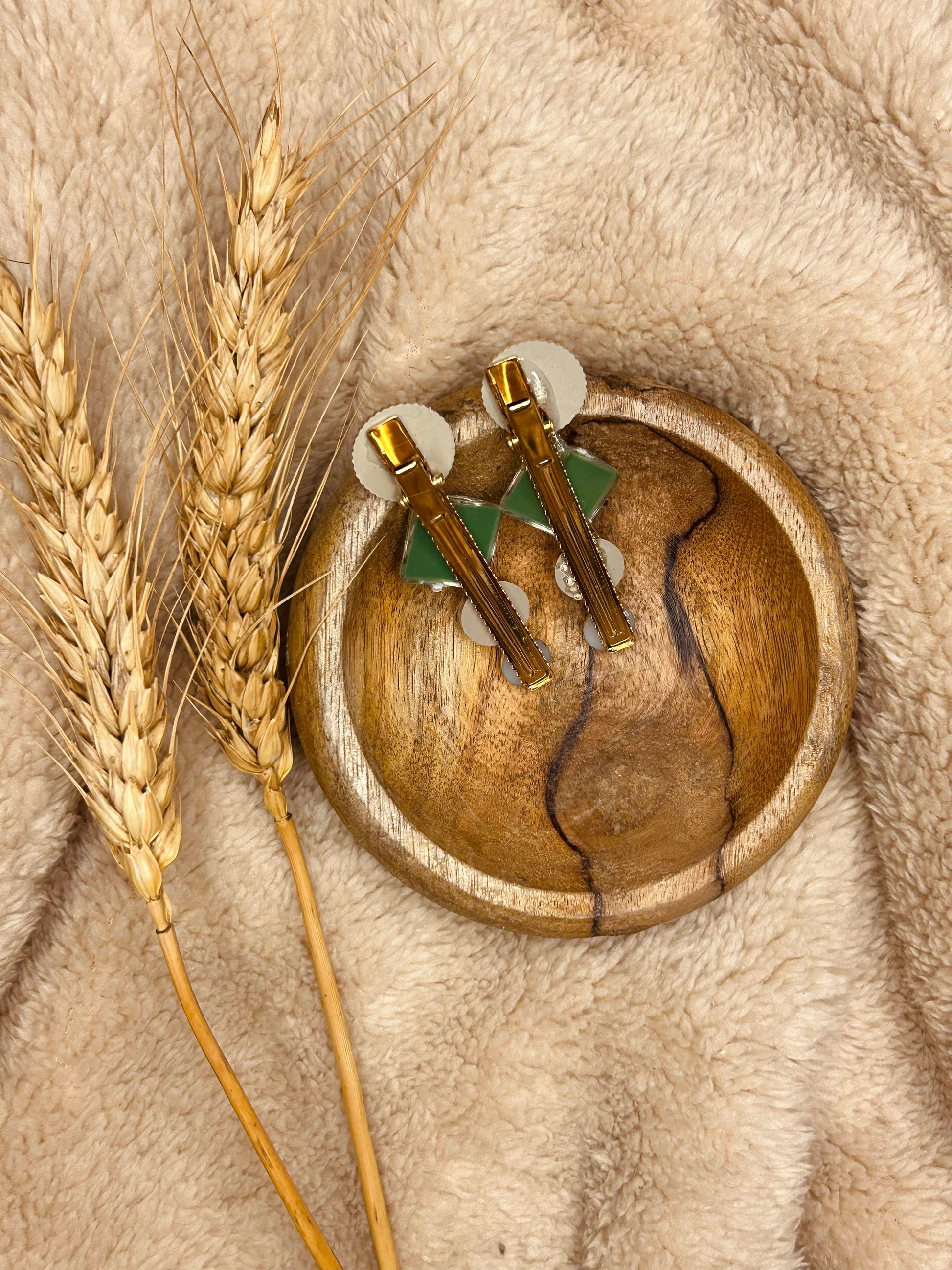 The Meadow Mist Marble Resin Hair Clips that blend soft marble texture with muted shimmer.