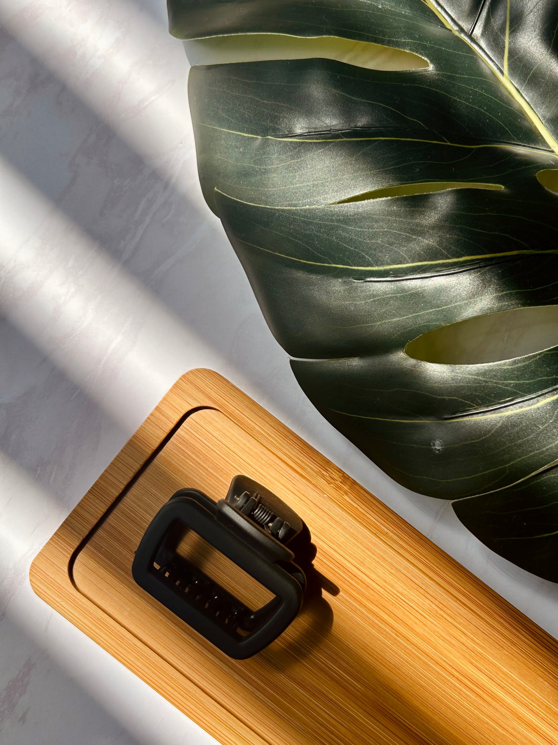 The Black Matte Claw Clip that adds a pop of golden warmth to everyday styles.