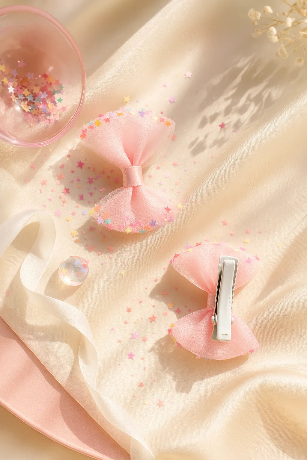 The Salmon Bow Clips that add whimsical sparkle to your little one's hair.